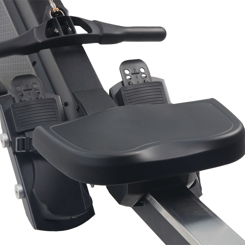 Cadrul de inalta calitate are o limita de greutate de 150 kg. Pentru a va face antrenamentul cat mai confortabil posibil, puteti regla lungimea pedalelor pentru a se potrivi cu dimensiunea picioarelor dvs. Manerul pentru vasle este usor de prins si poate fi atarnat sub calculator atunci cand nu este utilizat. O sina ultra-lunga de 145 cm este cireasa de pe tort.