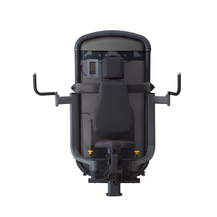 Aparat pentru extensii muschi pectorali SPORTMANN F1-7006, face parte din seria de echipamente profesionale, ce ofera utilizatorilor o experienta de antrenament premium la o valoare excelenta. Cadrul robust din metal ii confera o stabilitate mare in timpul antrenamentelor intense si ii permit o limita de greutate pentru utilizator de 200 kg. Acesta ofera un confort sporit, datorita tapiteriei din spuma de densitate mare si a captuseli din piele ecologica care ofera o rezistanta la uzura. Pe langa toate caracateristicile de mai sus aparatul mai este dotat cu un diplay LCD de 5" pe care se afiseaza timpul, nr. de repetari, greutatea selectata, calorii si ritmul cardiac (pentru acesta este necesar o centura de piept ''POLAR'' care nu este inclusa).