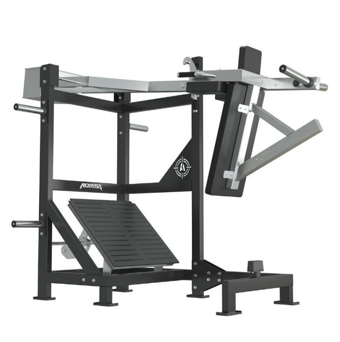 Constructia robusta din otel de inalta calitate asigura stabilitate maxima si durabilitate, fiind ideal pentru utilizarea intensiva in sali de fitness comerciale sau pentru sportivi avansati. Sistemul plate loaded permite incarcarea aparatului cu discuri olimpice, oferind posibilitatea de a adapta greutatea in functie de nivelul de pregatire si obiectivele de antrenament.