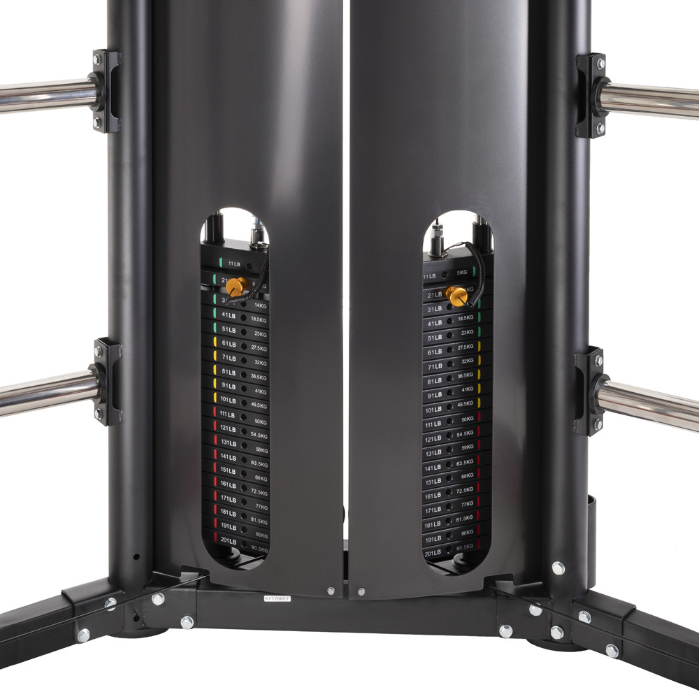 Va veti distra cu siguranta cu sistemul de scripeti cu contragreutate si toate adaptoarele de scripeti. Pe langa scripetele superior, mai exista 2 manere pentru scripetii cu contragreutate, o bara se poate atasa la scripeti pe ambele parti. Rola detasabila de spuma va ofera optiunea antrenarii cu banca de exercitii.