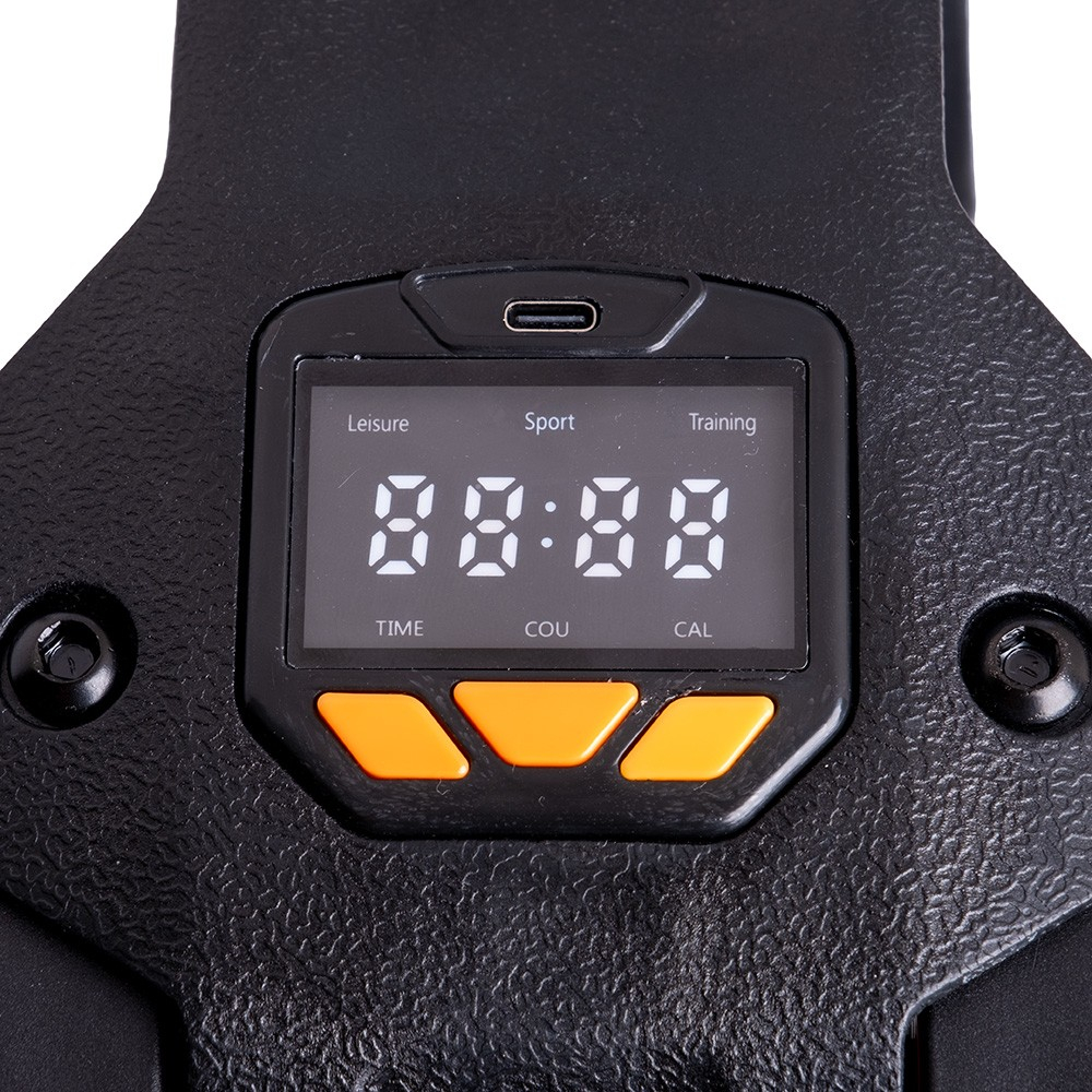 Doua dintre caracteristicile produsului va vor atrage atentia – ecranul digital si mecanismul de pliere. Ecranul va permite sa monitorizati durata exercitiului, numarul de repetari si caloriile consumate. Este prevazut cu 3 moduri de exercitiu. Modul Leisure va permite antrenarea fara o durata de timp setata; in modul Sport setati timpul de la care incepe numaratoarea inversa pentru finalizarea exercitiului; iar modul Training afiseaza numarul de repetari. Ecranul este alimentat de un cablu USB-C, care nu este inclus.