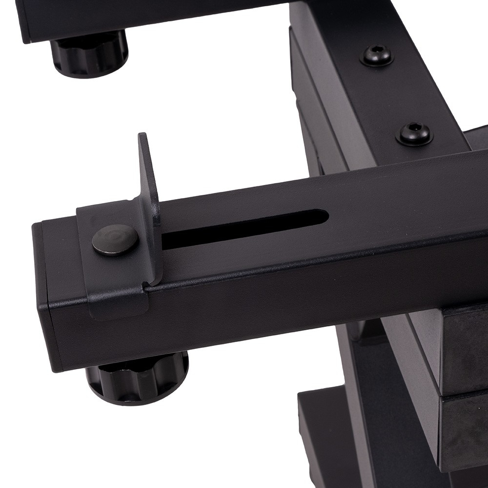 Suportul pentru gantere reglabile inSPORTline DuraBell® ofera o solutie eleganta si practica pentru depozitarea atat a ganterelor, cat si a greutatilor lor detasabile! Cadrul stabil din otel are o capacitate maxima de incarcare de pana la 100 kg, ceea ce il face perfect pentru o pereche de gantere inSPORTline DuraBell® de 24,5 kg. Ganterele sunt atasate la suport folosind suruburi de reglare pe ambele parti ale suportului.