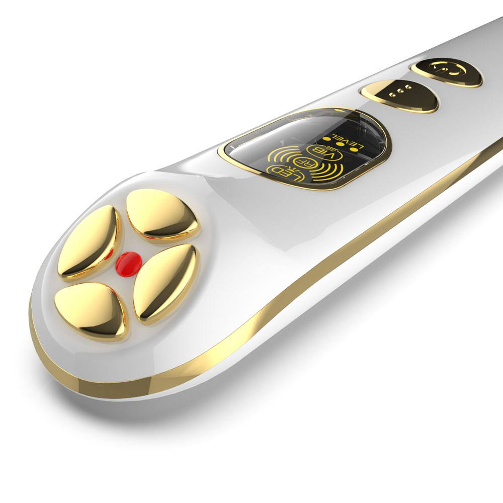 Aparat de masaj cu radiofrecventa pentru ochi inSPORTline Eyewish este un ajutor compact care va fi apreciat de toti cei care au ochii obositi, fie ca este vorba de lucrul la calculator, de concentrarea indelungata la scoala sau de purtarea ochelarilor. Aparatul genereaza unde de radiofrecventa care patrund in piele si perfectioneaza circulatia sangelui. Radiofrecventa este una dintre cele mai utilizate tehnologii in domeniul medicinei estetice non-invazive. In plus, capul dispozitivului este acoperit cu un strat de aur! Aurul are efecte antioxidante puternice si poate restabili rapid elasticitatea si stralucirea pielii. Atunci cand este utilizat in combinatie cu un produs cosmetic, undele de radiofrecventa asigura o mai buna absorbtie a produsului in profunzimea pielii si in acelasi timp, intensifica efectele produselor cosmetice.