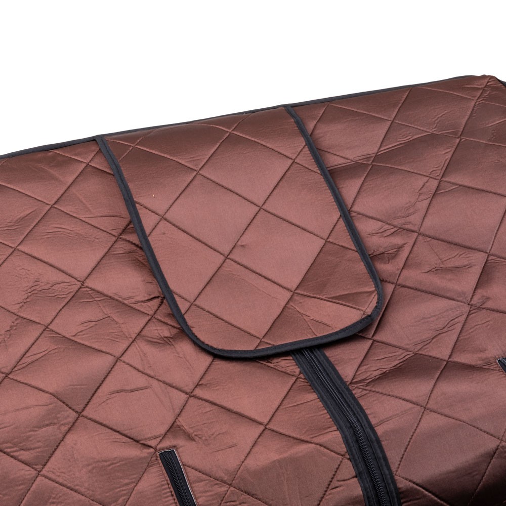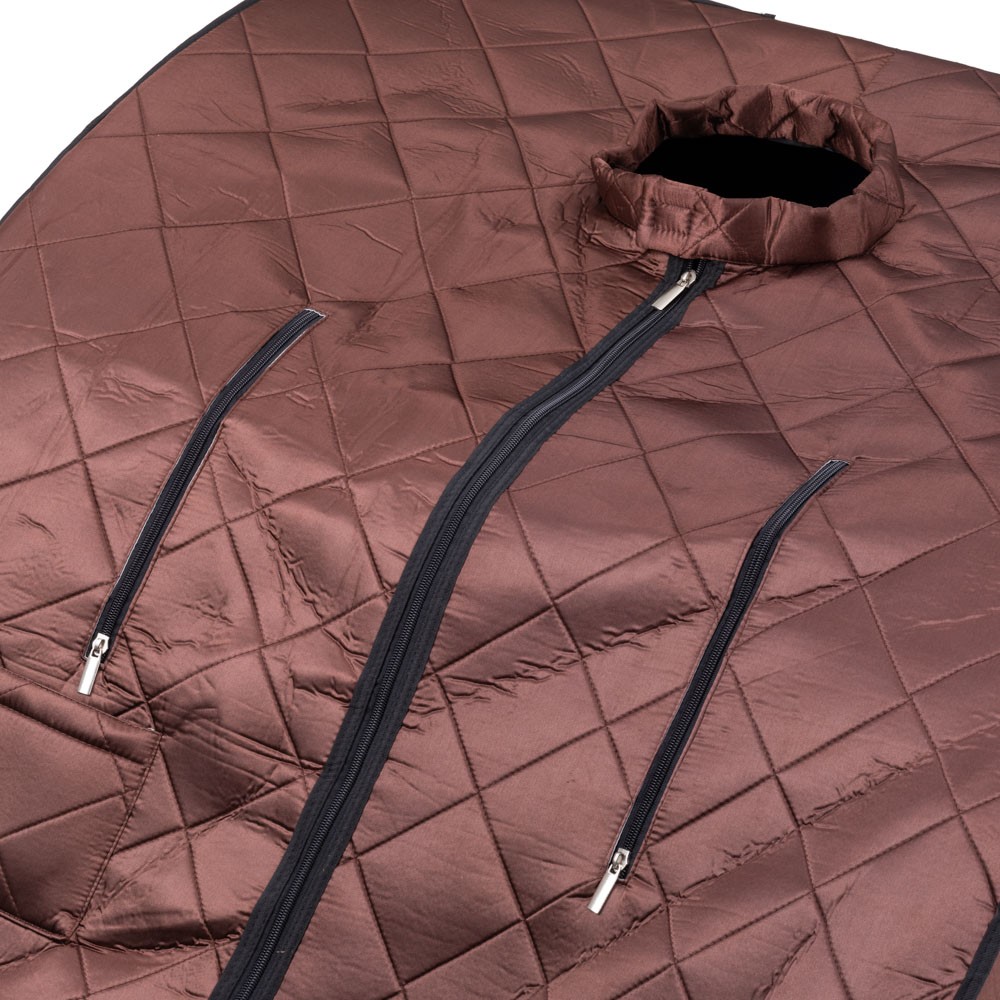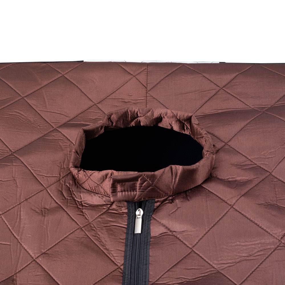 Sauna portabila cu infrarosu inSPORTline Mufera nu numai ca va va ajuta sa va relaxati, dar va va imbunatati si sanatatea. Va permite sa va bucurati de o sauna oricand si oriunde, fara a fi nevoie sa mergeti la un centru spa. Si nu prea poti pune un pret pe asta! Il puteti configura in cateva secunde si puteti incepe sa va relaxati imediat. Exista incalzitoare cu carbon incorporate in peretii saunei, care utilizeaza tehnologia FIR (infrarosu indepartat) care patrunde adanc in tesuturi, incalzindu-va miezul corpului, mai degraba decat doar suprafata pielii. Datorita designului sofisticat al saunei, caldura este distribuita uniform in intreaga sauna. Aceasta ofera beneficii impresionante de vindecare si terapeutice: ajuta la eliminarea toxinelor din corpul dumneavoastra, accelereaza metabolismul, deschide porii, dilata vasele de sange si accelereaza recuperarea musculara.