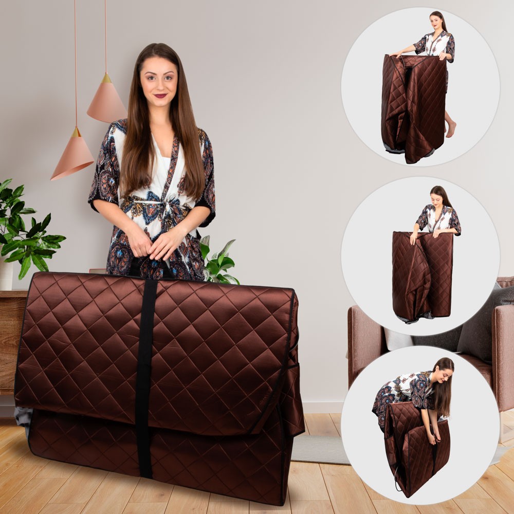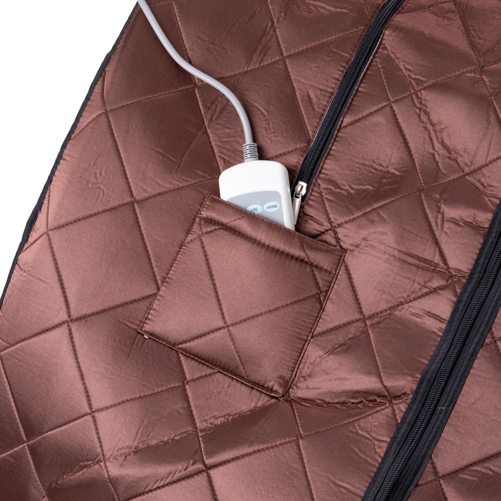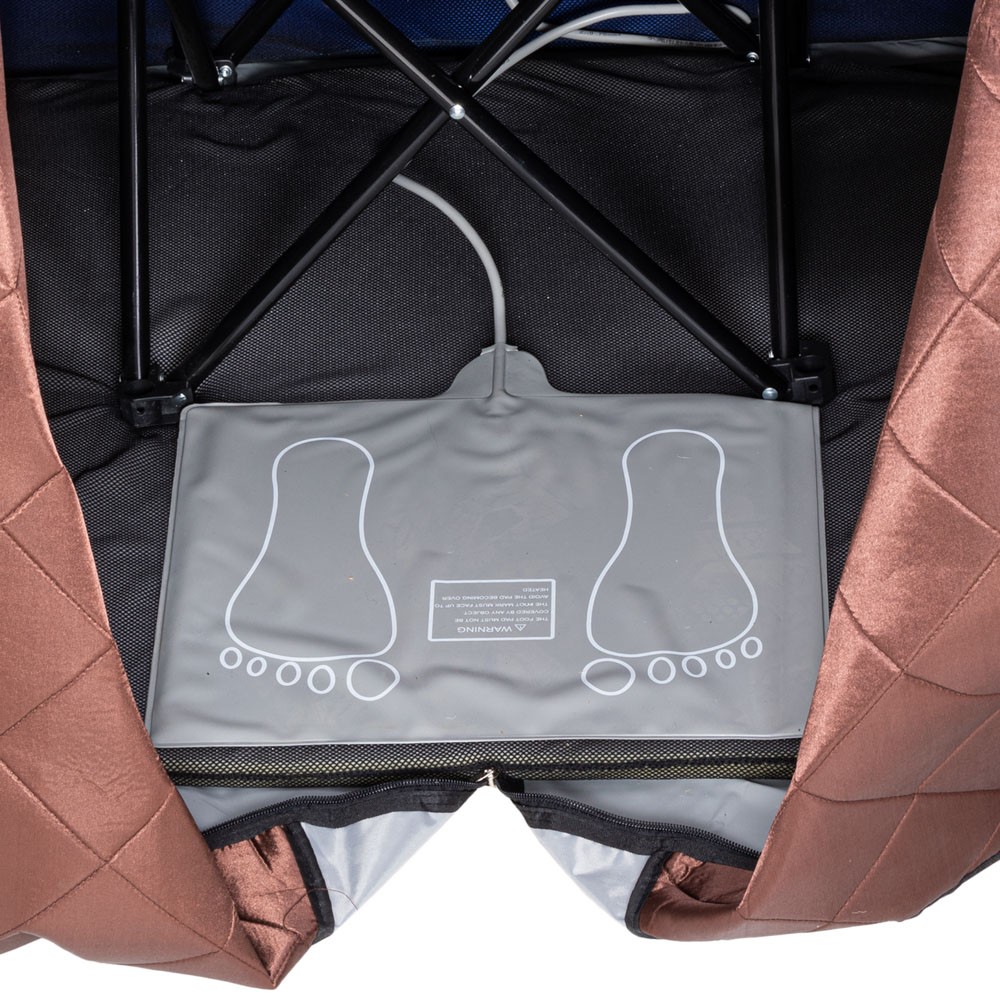 Sauna este prevazuta cu un scaun pliabil si un suport de incalzire pentru picioare. Folositi telecomanda pentru a regla temperatura atat a saunei, cat si a suportului pentru picioare. Fermoarele cu doua directii va faciliteaza intrarea/iesirea din sauna. Sauna are, de asemenea, doua deschideri pentru brate cu fermoar, care va vor fi de folos daca decideti sa cititi o carte sau sa vizionati un film pe tableta in timp ce va bucurati de sauna. Designul sau de economisire a spatiului face ca sauna portabila cu infrarosu inSPORTline Mufera sa fie ideala pentru spatiile mici - o puteti plia cu usurinta si o puteti depozita sub pat sau in spatele dulapului.