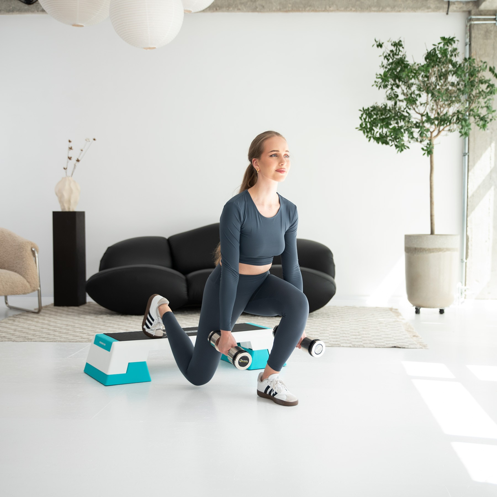 Banca are o suprafata anti-alunecare, asigurandu-va ca va puteti misca cu incredere chiar si in timpul exercitiilor dinamice. Picioarele din cauciuc impiedica alunecarea produsului pe diferite suprafete, garantand stabilitate si siguranta in utilizare.