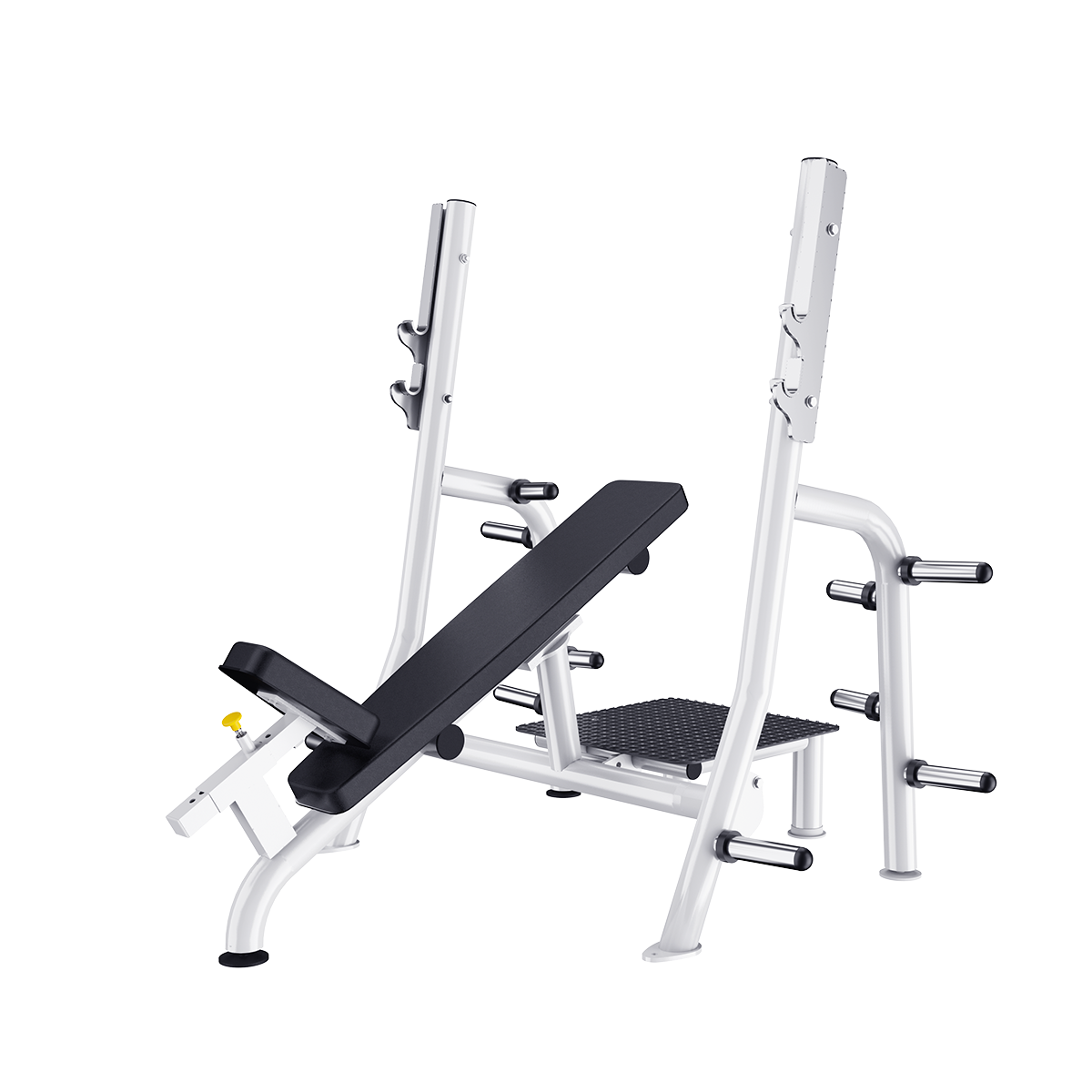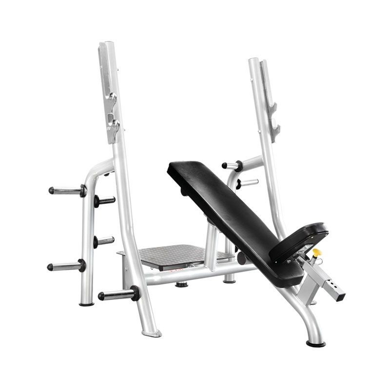 Banca de Forta Inclinata SPORTMANN F1-A79 este un aparat profesional pentru exercitii cu bara de haltera pe plan inclinat. Acesta are doua puncte de depozitare pentru bara de haltera. Pe langa acesta mai are 12 cuie pentru depozitarea discurilor de greutati pentru a mentine spatiul de antrenament ordonat. Cadru solid si robust ofera bancii stabilitate sportita in timpul exercitiului. Confortul utilizatorului este asigurat de captuseala groasa. Aceasta este realizata din piele si umpluta cu spuma cu densitate mare, aceasta find rezistenta la abraziune si umiditate. Banca de Forta Inclinata SPORTMANN F1-A79 este ideala pentru uzul comercial, datorita designului modern si a materialelor de calitate din care este construita.