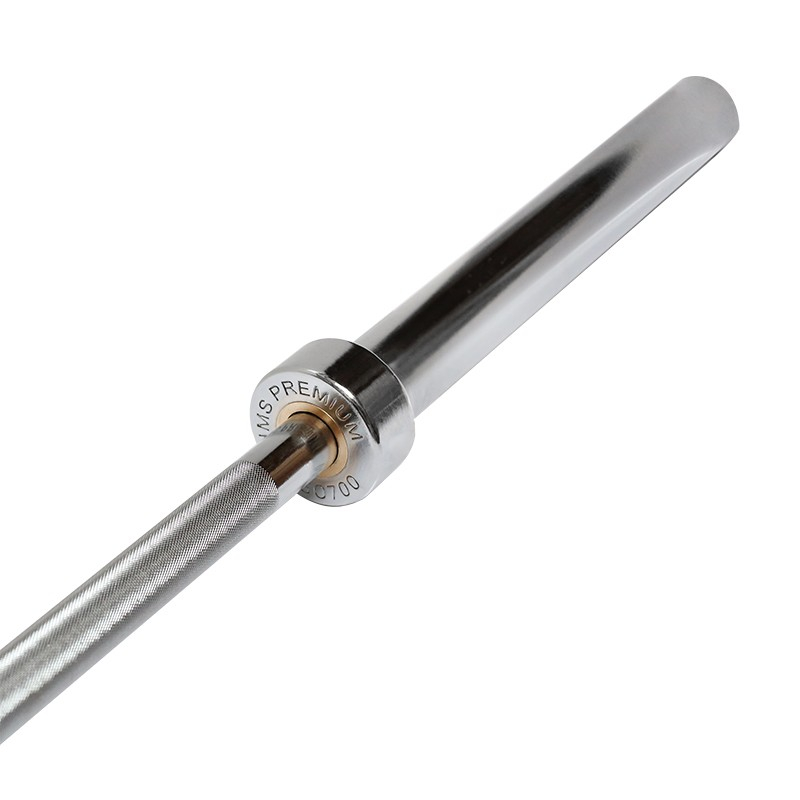 Bara haltera olimpica HMS GO700 220cm/50mm este realizata dintr-un otel cromat special, care a trecut printr-un proces de intarire. Produsul HMS se caracterizeaza printr-o durabilitate combinata cu o flexibilitate perfecta. Pentru a asigura o aderenta buna si confortabila, partea de prindere a barei este texturata. Sarcina maxima este de 700 kilograme. La randul sau, diametrul partii de prindere este de 30 mm asigura durabilitate ridicata si confort in timpul exercitiului. Procesul de placare cu crom garanteaza aspectul sau pentru o perioada foarte lunga de utilizare si reprezinta cea mai buna protectie impotriva ruginii. Bara haltera olimpica HMS GO700 220cm/50mm are 8 rulmenti cu ace (4 pe fiecare parte), care permit rotirea fara probleme a pieselor. Designul sau elimina tensiunile de la capetele rolelor si prin urmare mareste durata de viata a rulmentului. In ciuda faptului ca sunt mici, rulmentii cu role de ac au o rigiditate ridicata si capacitate de incarcare. Doua sigurante tip clema incluse in set garanteaza o pozitie stabila a greutatii pe bara in timpul exercitiilor. Capacele au elemente din cauciuc in partea interioara pentru a preveni slabirea sarcinii.