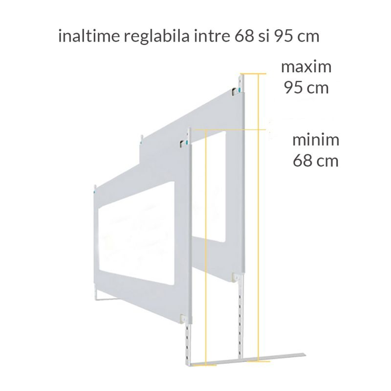 Acest model de protectie pentru pat are inaltime reglabila intre 68 si 98 cm