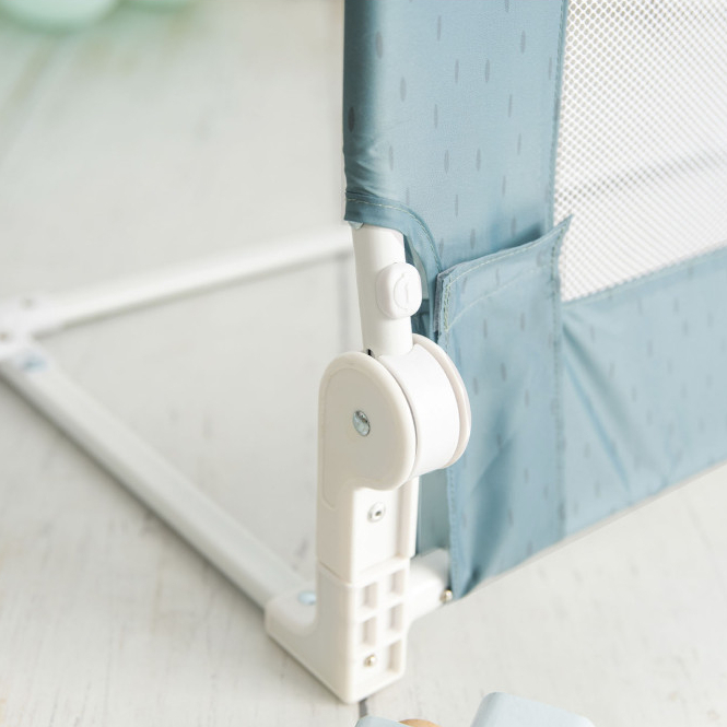 Barele metalice sunt acoperite cu material textil moale, pentru evitarea accidentelor. Partea centrala a barierei este confectionata din plasa ce ofera vizibilitate copilului si nu creaza senzatia de ingradire