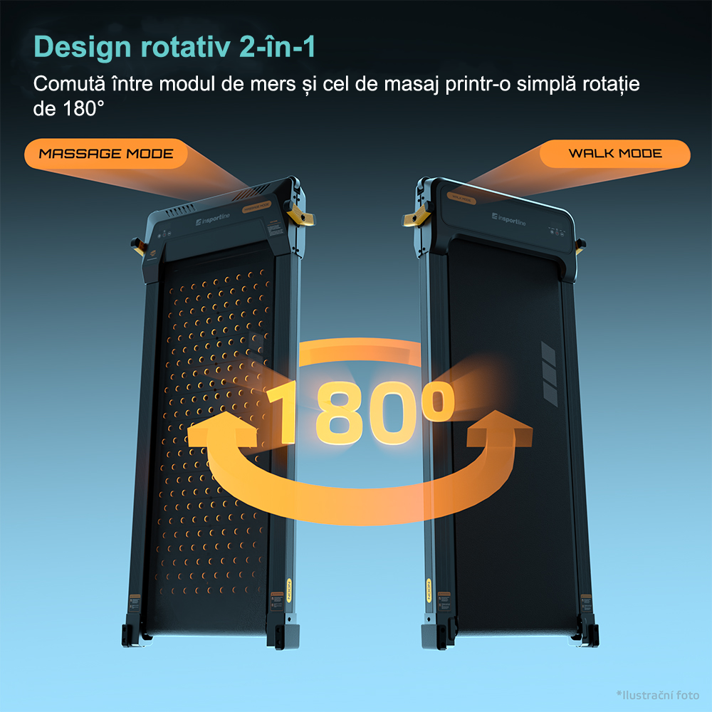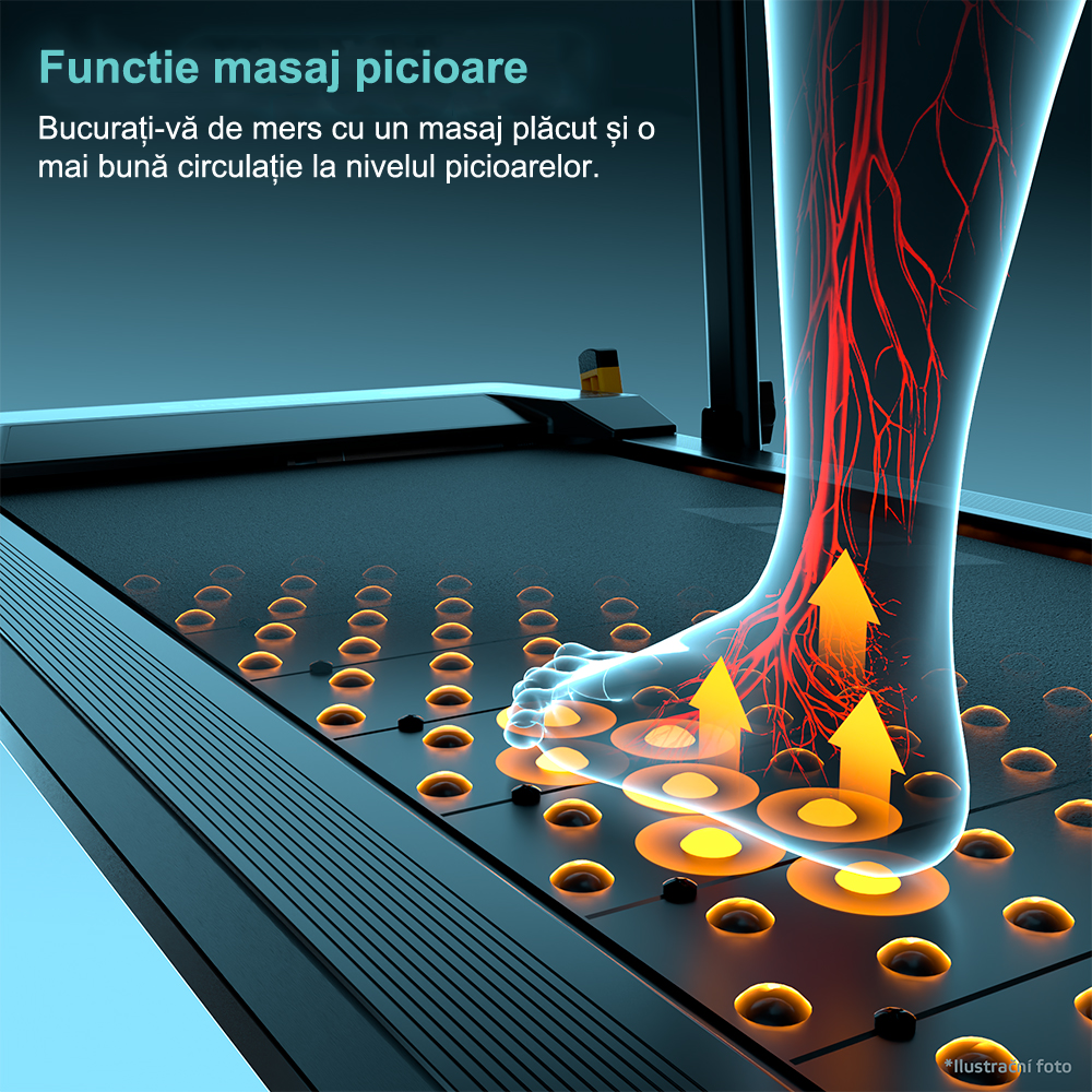 Iar cand vrei sa te relaxezi, pur si simplu intorci banda pe partea de masaj, pentru o experienta calmanta — perfecta pentru alergatori, pasionati de mers sau oricine doreste sa se destinda dupa o zi lunga.
