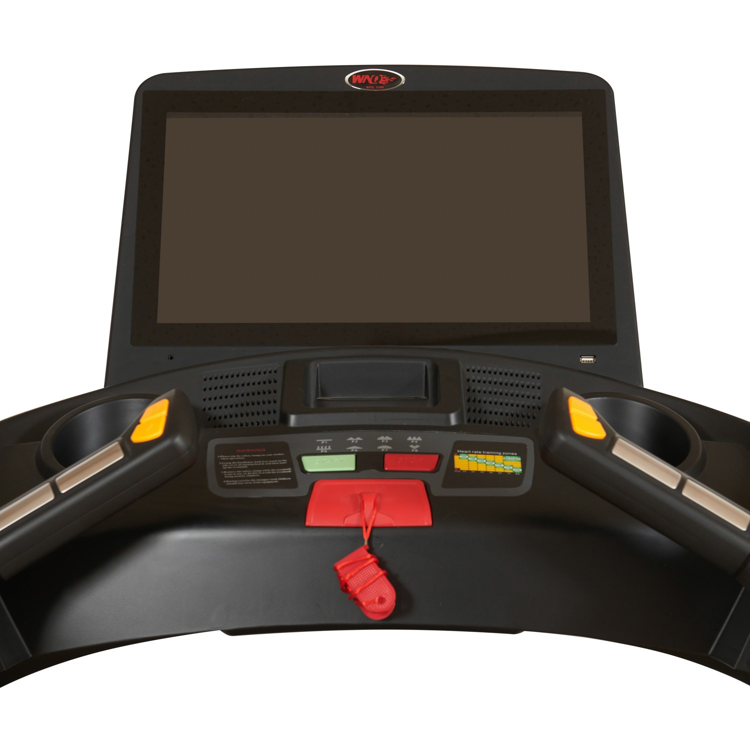Banda de Alergare electrica Sportmann F1-8900A-TV3 este dotata cu touch screen de 19" care afiseaza viteza, inclinatia, caloriile consumate, timpul, pulsul, numarul de pasi, etc pentru a va putea monitoriza atent fiecare sesiune de alergare. Senzorii de puls de pe manere permit masurarea pulsului in timpul alergarii. Intrarea USB si jack de 3.5 va ofera posibilitatea sa ascultati muzica MP3 preferata in timp ce alergati.