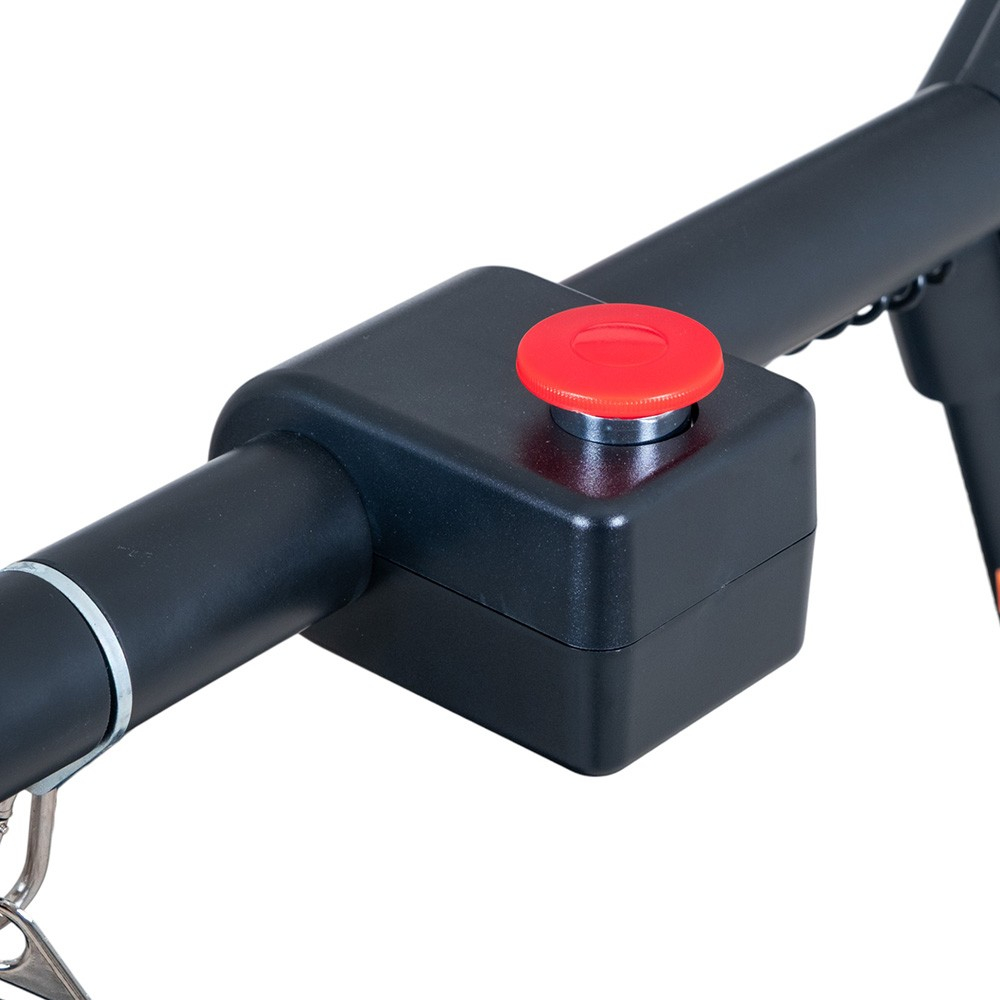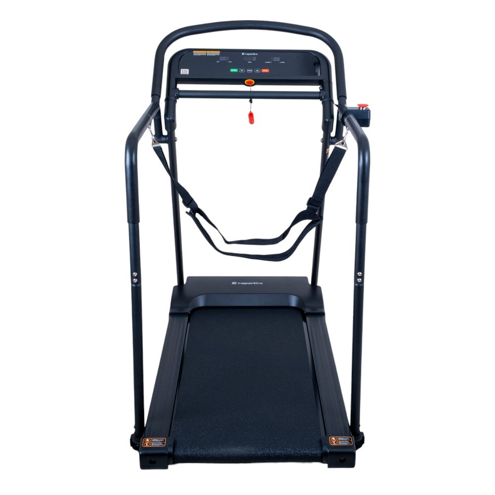 Banda inSPORTline Avolin este echipata cu un sistem dublu de siguranta – o cheie magnetica clasica pentru utilizator si un buton de oprire de urgenta amplasat pe exteriorul barelor de sprijin, care permite unui asistent sa opreasca imediat banda. Setul include si curele de siguranta, ce ajuta la mentinerea stabilitatii in timpul mersului, oferind un plus de incredere in timpul antrenamentului. Cadrul solid si barele laterale lungi garanteaza un antrenament sigur si controlat, indiferent de ritm.