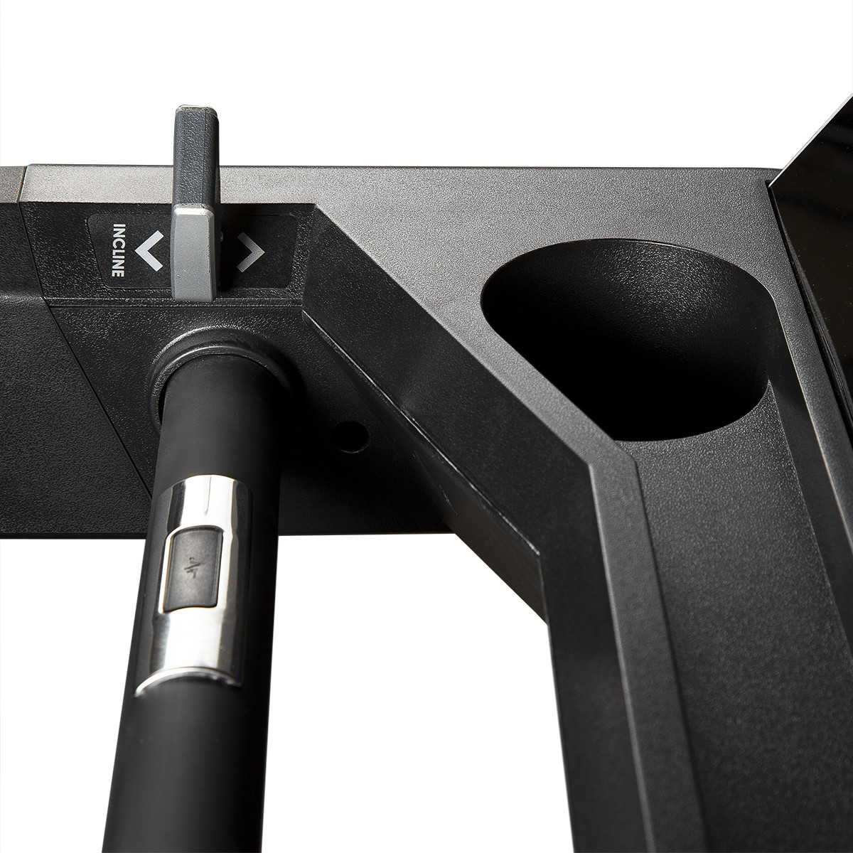 Designul benzii de alergat permite antrenament intensiv in conditii confortabile. Datorita sistemului de amortizare, articulatiile si coloana vertebrala nu vor fi suprasolicitate in antrenamentele lungi. Si multumita suportului de sticla si acelui de telefon mobil toate acestea vor fi la indemana.