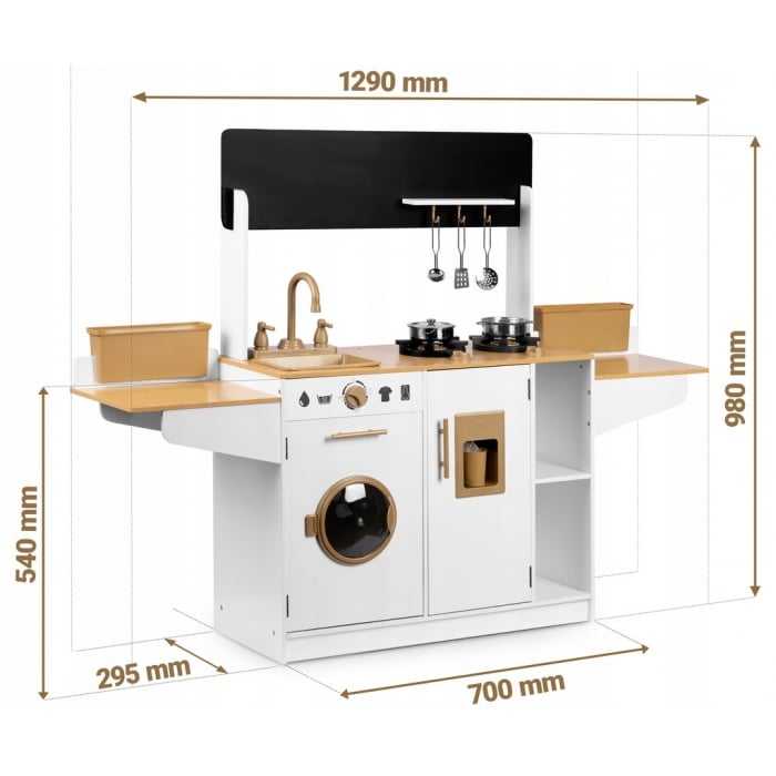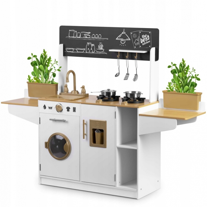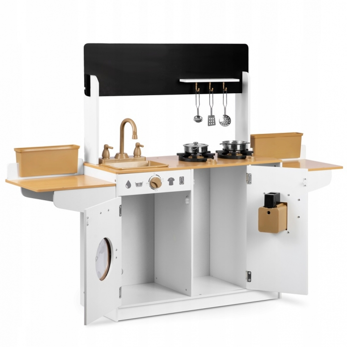 Bucataria este o jucarie educativa care ii va permite copilului tau sa se simta ca intr-o bucatarie adevarata. Datorita usilor care se deschid, butoanele aragazului care se invart si vaselor, copilul se va distra de minune dezvoltand abilitatile manuale in acelasi timp.