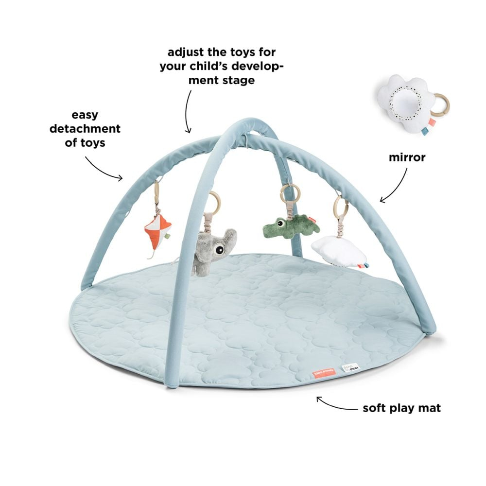 Daca vrei o solutie sigura, adaptabila si creativa pentru bebelus, Salteluta de joaca cu activitati Done by Deer Playground Blue ofera echilibrul ideal intre confort, stimulare senzoriala si stil.