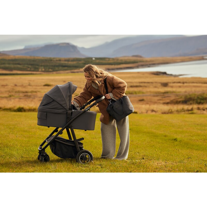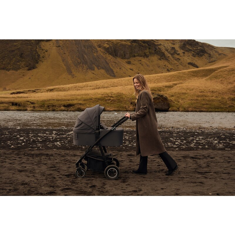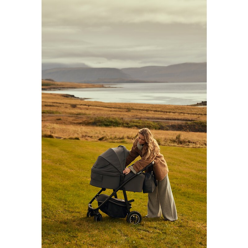 Aspect mereu impecabil. Materialele sunt impermeabile, placute la atingere si rezistente la sifonare, mentinand caruciorul elegant si atragator in fiecare zi. Protectia UPF+ aplicata direct pe copertina elimina necesitatea unei captuseli suplimentare.