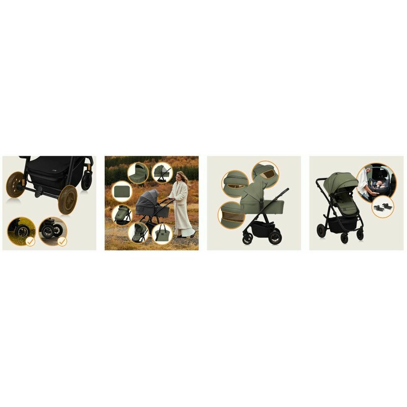 Este un carucior elegant, spatios si practic, care ofera suficient spatiu pentru bebelus si confort pentru parinti, fie in oras, fie pe teren accidentat.