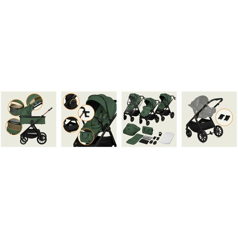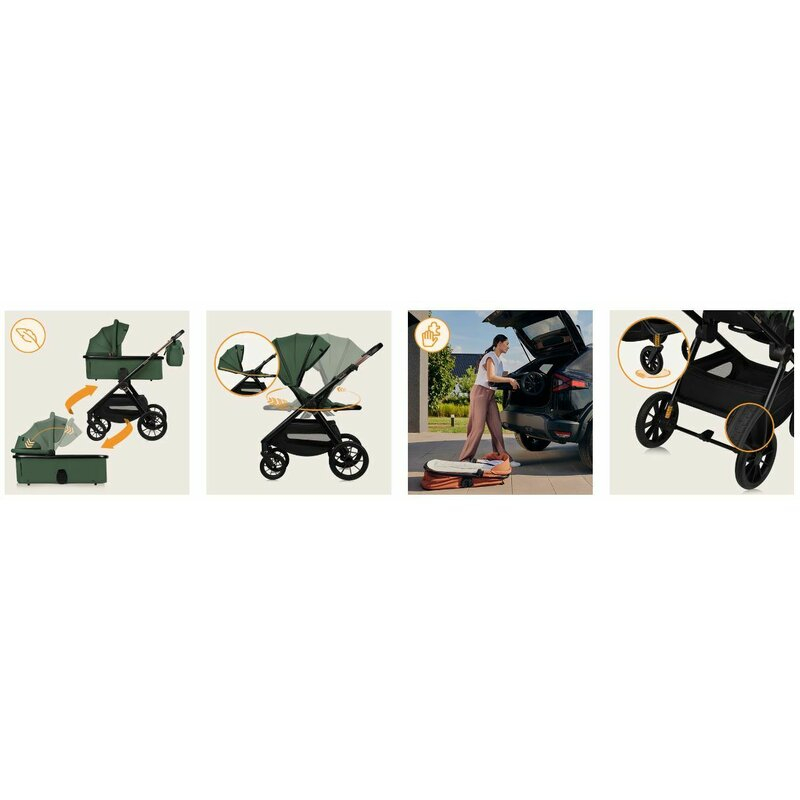 Aceste caracteristici gandite cu atentie asigura caruciorul este pregatit pentru orice sezon si toate conditiile meteo. Husa de ploaie inclusa si parasolarul ventilat asigura protectia copilului tau in orice vreme. Husa pentru picioare se ataseaza ingenios la insertia de protectie a caruciorului, creand un sac de dormit practic 2 in 1, in timp ce suportul pentru pahar si geanta pentru parinti ofera spatiu de depozitare convenabil pentru obiecte mici. Setul include, de asemenea, adaptoare pentru ajustarea inaltimii landoului si pentru atasarea scaunului auto la cadrul caruciorului.