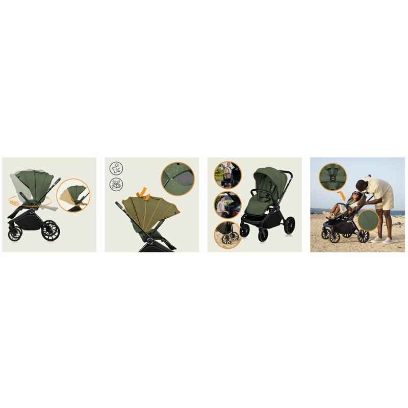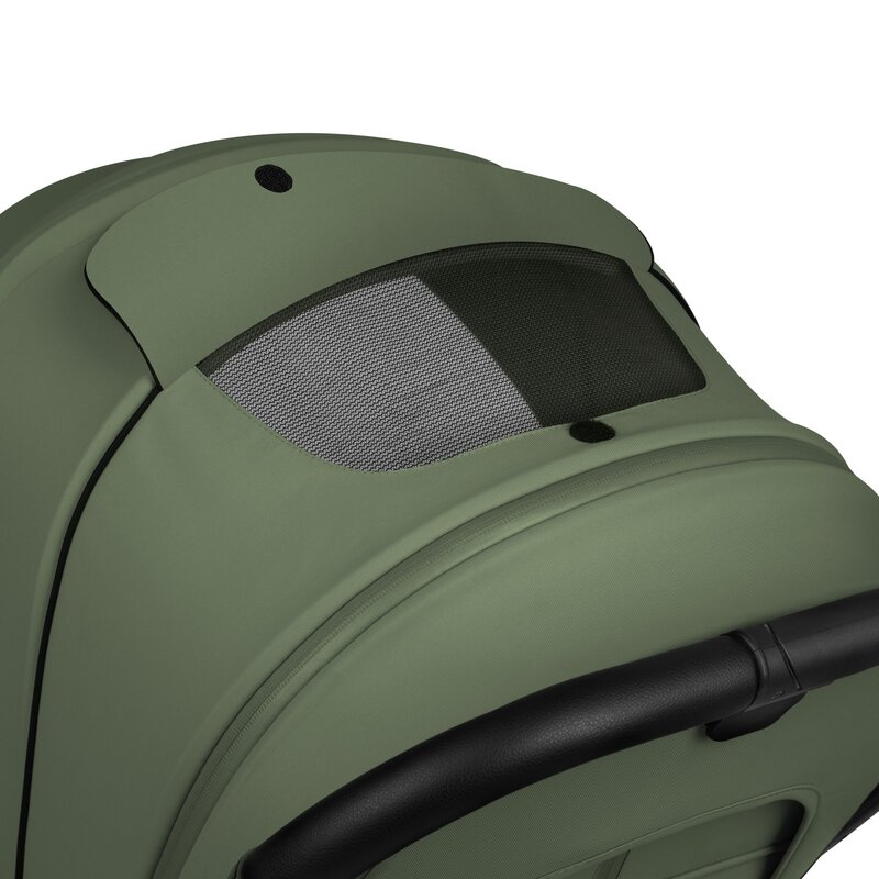 Copertina caruciorului, atat pentru landou cat si pentru varianta sport, este echipata cu filtru UPF50+ si un strat rezistent la apa. Copertina larga protejeaza copilul de conditiile meteo si de stimulii excesivi. Panoul de ventilatie extensibil din copertina si sistemul de ventilatie asigura un mediu placut pentru copil.