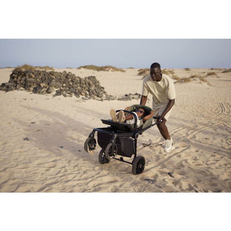 Centrul de greutate scazut face ca acest carucior sa fie foarte usor de manevrat, iar sistemul de pliere in doua trepte permite transportul setului in portbagajul unei masini compacte. Caruciorul poate fi pliat chiar si cu scaunul montat si, datorita curelei incluse, este usor de transportat. Manerul pentru parinti are 9 trepte de ajustare pentru a se potrivi tuturor inaltimilor.