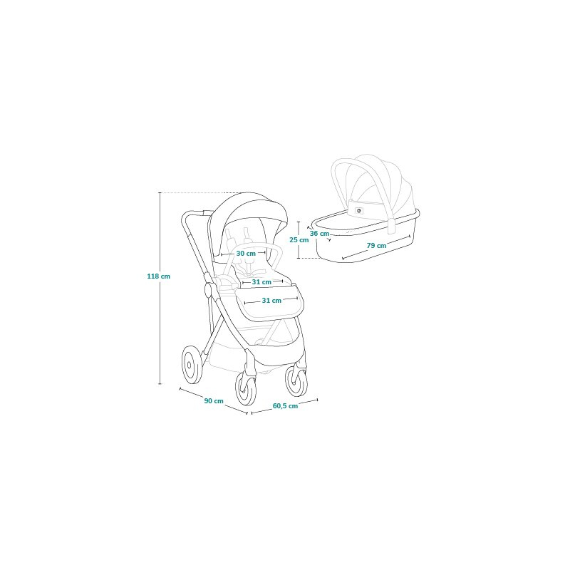 Lionelo Amber 2 in 1 ofera o gama larga de accesorii, precum plasa de tantari universala si pelerina de ploaie, protectie pentru picioare, precum si saltea de infasat si geanta incapatoare. Caruciorul este dotat si cu un cos incapator pentru produse de ingrijire si articole mici de cumparaturi. Tesatura din carucior este foarte rezistenta la abraziune si intindere si poate fi curatata cu usurinta .