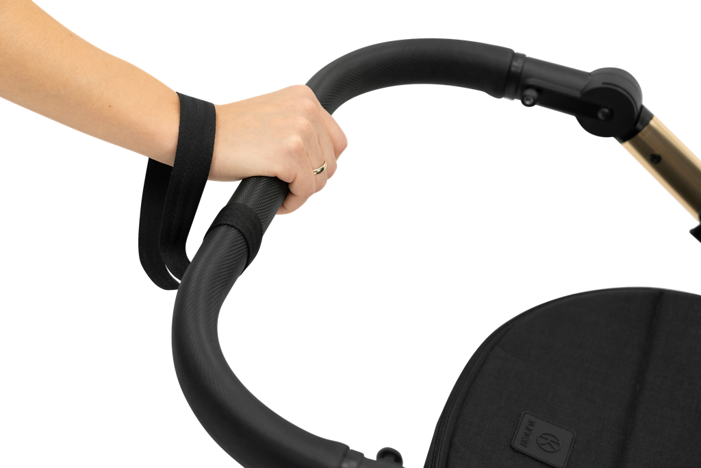 Cureaua de siguranță montată pe mâner asigură că căruciorul nu va scăpa din mâinile tale în momentele de distragere a atenției. Siguranța copilului tău este prioritatea noastră, astfel încât soluțiile noastre asigură control total asupra căruciorului, chiar și în condiții dificile.