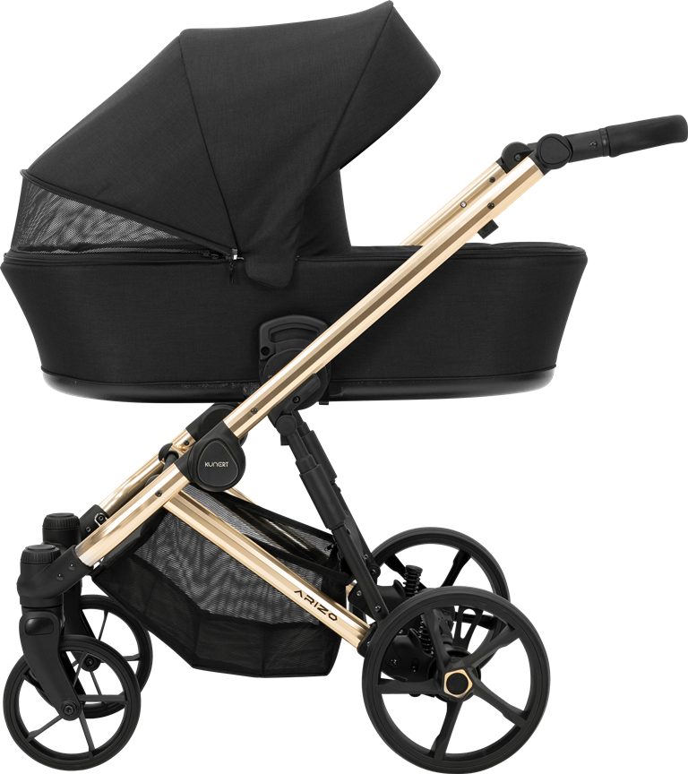 Căruciorul pentru copii Arizo este ușor, dar în același timp proiectat pentru confortul copilului tău și comoditatea utilizării pentru tine. De asemenea, nu am uitat de aspectul modern. Cadrul tridimensional auriu sau negru, mânerul din carbon, roțile elegante și rucsacul elegant cu siguranță vor face plimbările mai plăcute.