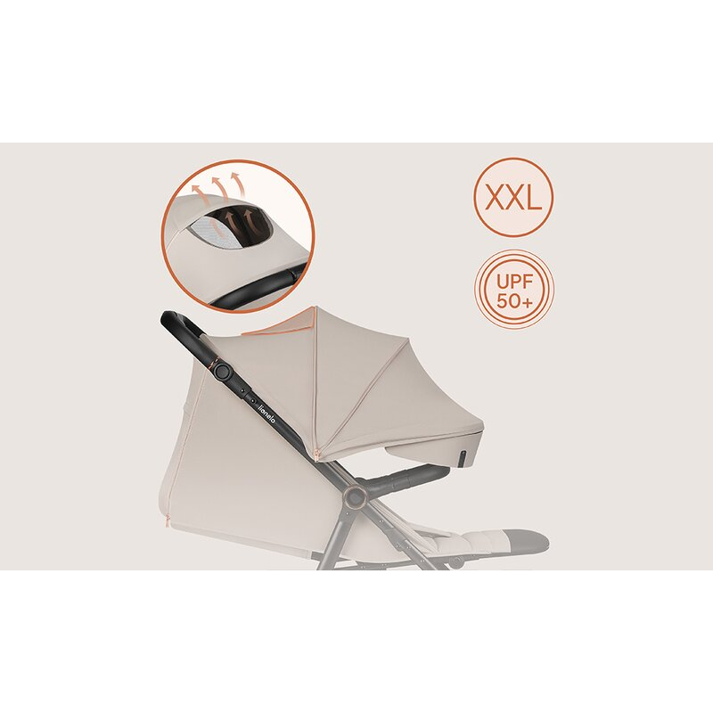 Capotina XXL ofera suficient spatiu pentru un copil. Are un panou retractabil suplimentar, o fereastra pentru un flux de aer mai bun.