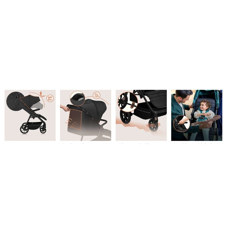 Nicio vreme nu va va opri, deoarece copertina XXL este impermeabila si echipata cu protectie solara la inaltime. Aceasta include si un panou suplimentar retractabil si o fereastra de ventilatie. Intregul design a fost atent gandit, cu functii utile pentru plimbarile zilnice: buzunar pentru telefon, suport pentru picioare cu zona curata, banda reflectorizanta pe cosul incapator si suport pentru pahare inclus. Mira este un carucior cu care va veti simti in largul vostru si care va poate insoti pentru o perioada lunga de timp.
