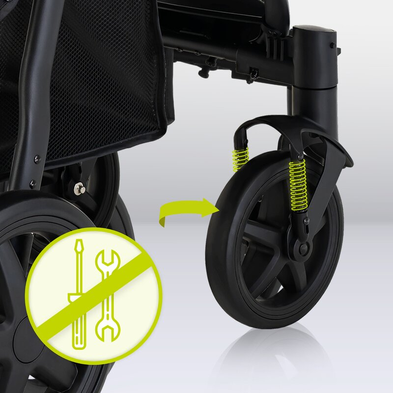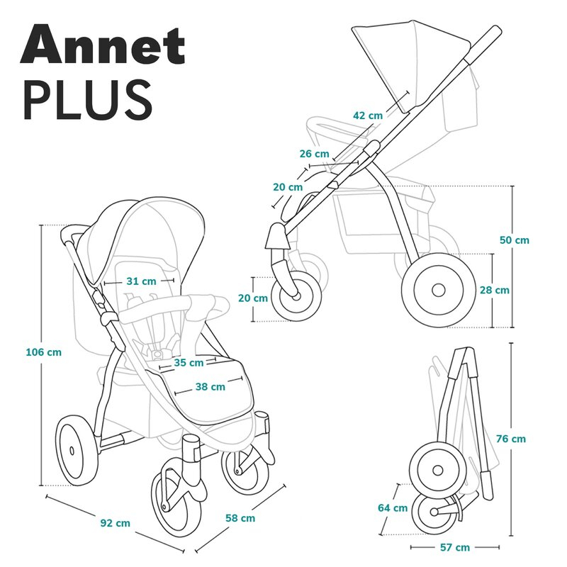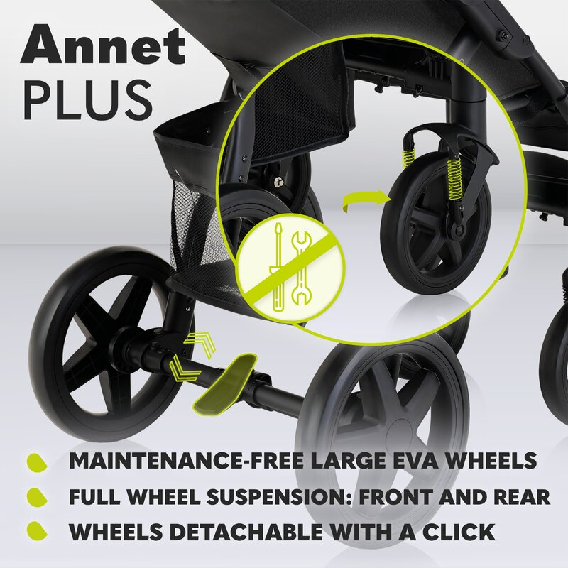 Annet Plus este un carucior functional pe fiecare tip de suprafata gratie rotilor create sa reziste.