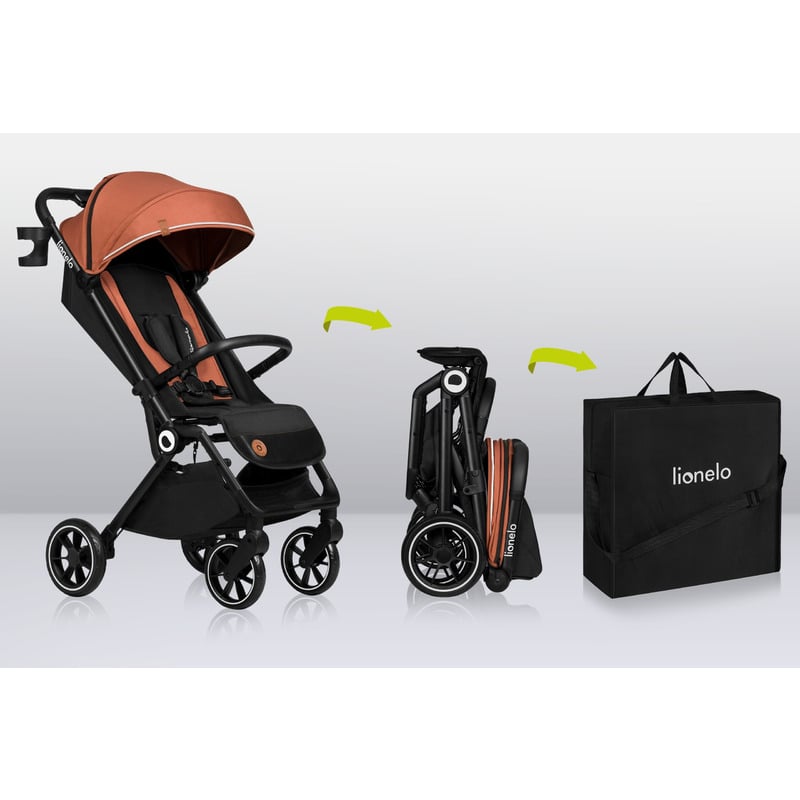 Caruciorul Lionelo Cloe poate fi pliat cu usurinta cu o singura mana . Puteti folosi si sistemul de pliere automata - dupa apasarea butonului, caruciorul se va plia singur. Il poti pune cu usurinta chiar si intr-un portbagaj mic. Cadrul durabil din aluminiu cantareste doar 8,2 kg. Puteti purta cu usurinta caruciorul peste umar. Avand in vedere acest lucru, am inclus o husa speciala si o curea in set.