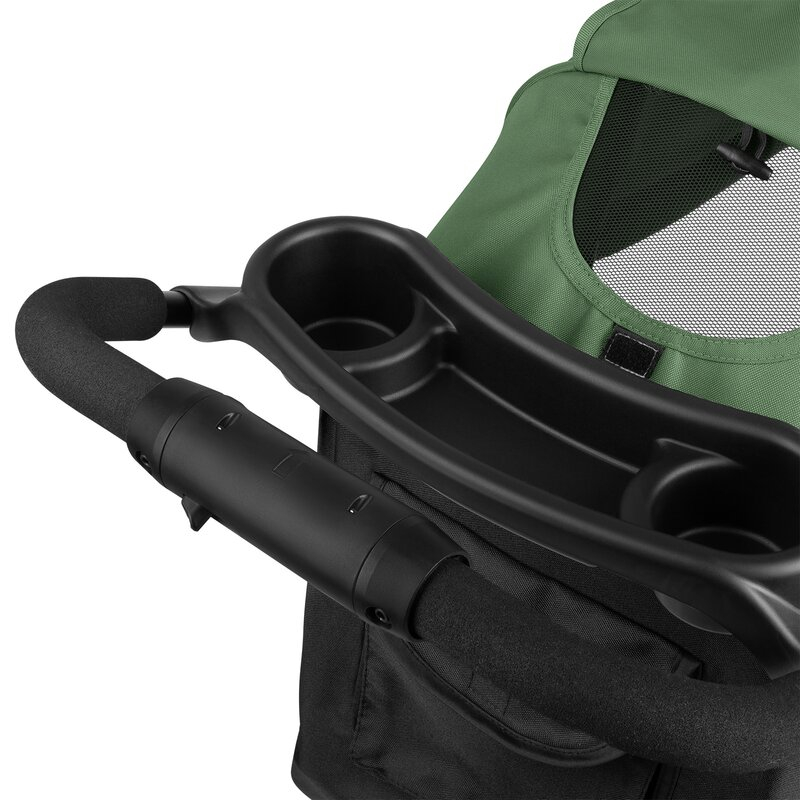Caruciorul Emma este prevazut cu un cos pentru depozitare spatios, suporturi pentru pahare/ biberone si tavita frontala.