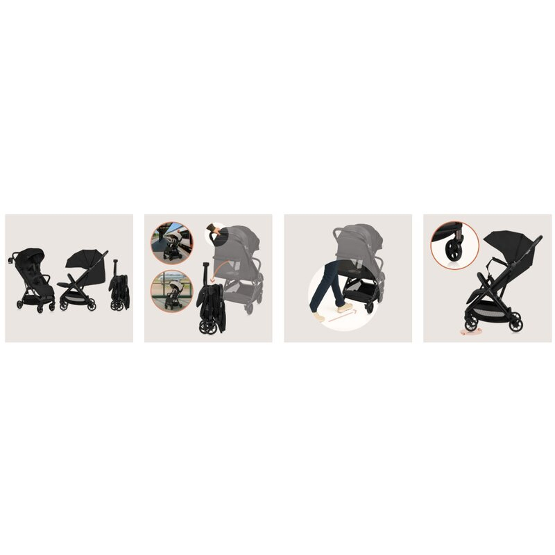 Dupa pliere, caruciorul sta singur, nu trebuie sa-l sustii si nu trebuie sa-ti faci griji cu privire la murdarire. Tapiteria si manerul nu ating solul.