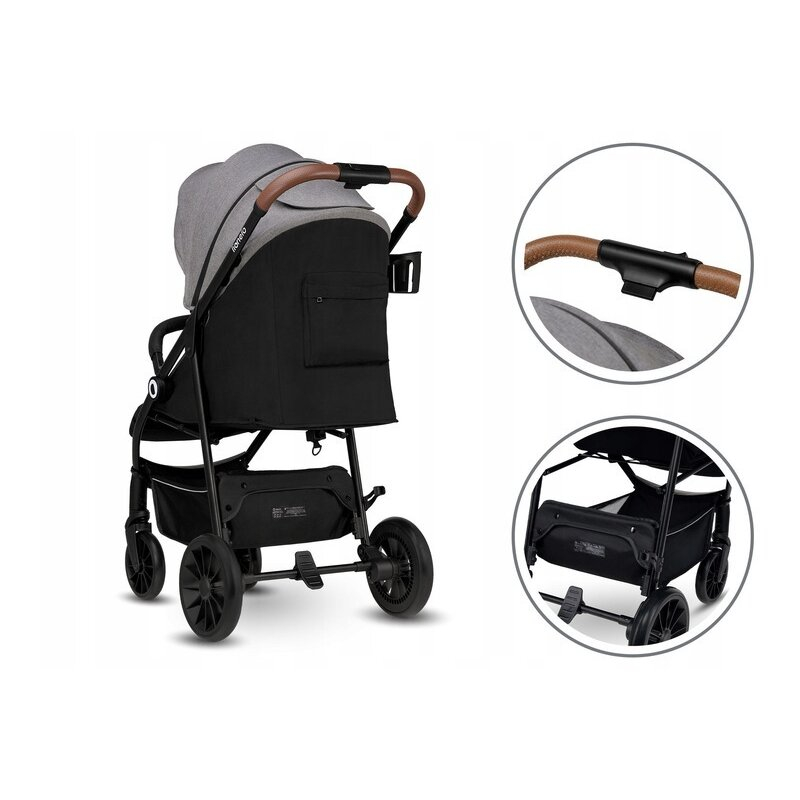 O gama larga de accesorii fac din Lionelo Zoey un produs foarte versatil. In afara de plasa de protectie contra tantarilor si suport pentru pahare, caruciorul are un cos mare pentru accesorii. Tapiteria caruciorului este fabricata dintr-un material usor de curatat, rezistent la abraziune si intindere. Zoey are o finisare eleganta din eco-piele si elemente fluorescente care imbunatatesc vizibilitatea produsului.