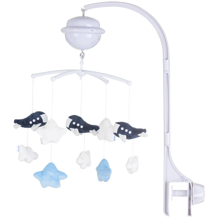 Carusel muzical pentru patut cu proiector Chipolino Planes potrivit pentru nou-nascutii. Melodii blande ajuta copilul sa adoarma mai usor. Miscarile circulare si lente ale caruselului atrag privirile bebelusului si il ajuta sa-si dezvolte musculatura oculara.