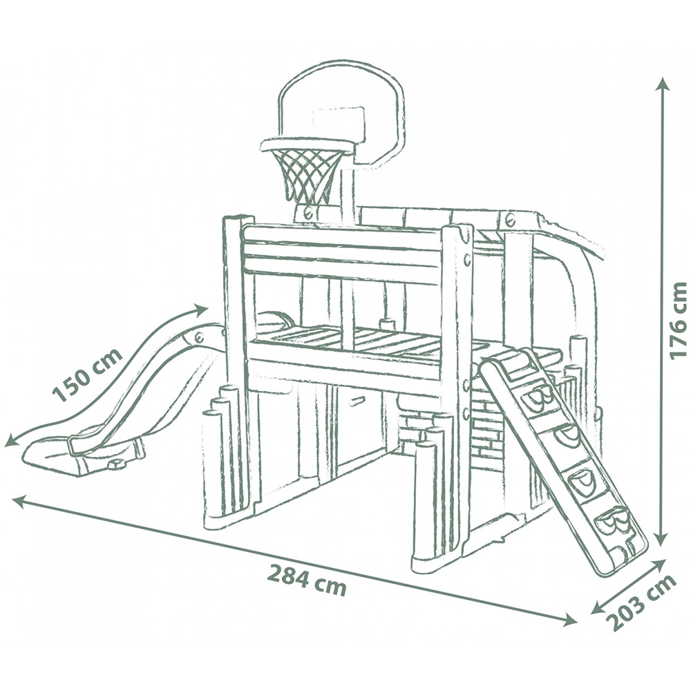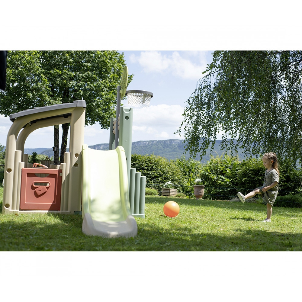 Centru de joaca Smoby este o jucarie multifunctionala pentru orice copil de la varsta de 2 ani. Fiind alcatuit din mai multe componente: tobogan cu o lungime de 1,50 m, casuta, cos de baschet, catarator si poarta de fotbal.