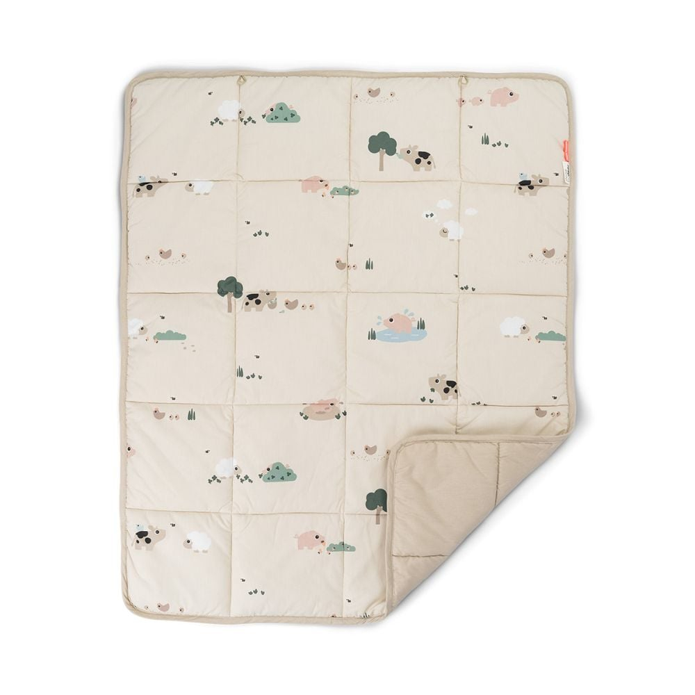 Salteluta de joaca Done by Deer Tiny Farm Sand este o salteluta groasa, matlasata, ideala pentru joaca pe podea. Reversibila si confortabila, Salteluta de joaca Done by Deer Tiny Farm Sand ofera pe o parte un print dragut Tiny Farm, iar pe cealalta o suprafata de culoare bej moale, pentru sesiuni de joaca relaxante.