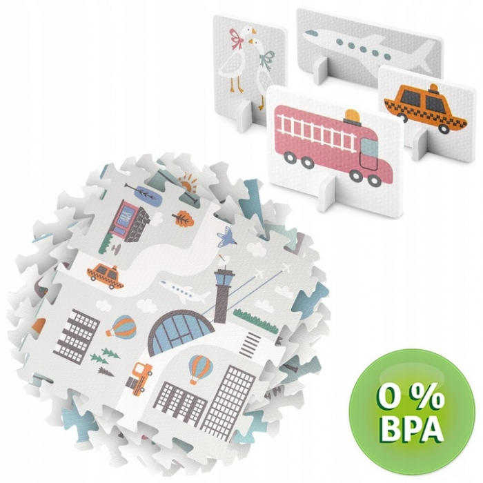 Aceasta salteluta unica din spuma ii va oferi copilului tau confortul necesar in timp ce se joaca. Salteluta este formata din 9 piese de 38 x 38 cm. Este realizata dintr-un material usor de cutatat, spuma EVA, si asigura izolatie termica fata de sol. Salteluta este perfecta pentru copiii predispusi la alergii, deoarece nu aduna praf sau acarieni.