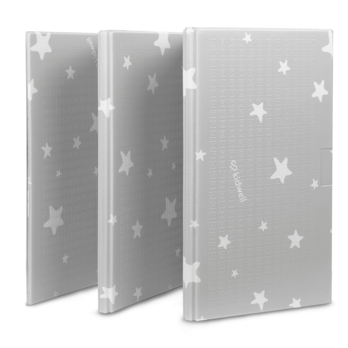 - 2 fete diferite: pe o parte sunt ilustrate animalute dragalase, iar pe cealalta parte stelute care se potrivesc cu orice interior;