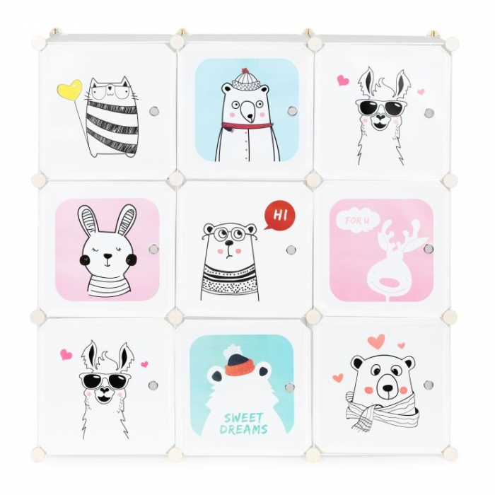 Un dulap modular pentru copii cu o tema de basm este o completare excelenta pentru orice camera sau dormitor pentru copii. Este format din 9 module, fiecare dintre ele avand o usa cu imprimeu.