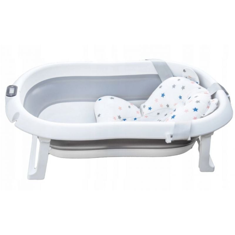 Cada pliabila Genua cu termometru electronic si perna de baie detasabila poate fi folosita de la nastere si pana la 24 luni.