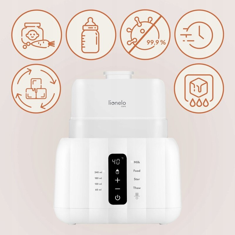 Incalzirea laptelui sau a mesei pentru bebelus devine mai rapida si mai simpla cu incalzitorul de biberoane Lionelo Thermup Double 6 in 1. Un singur dispozitiv acopera toate nevoile zilnice: incalzeste, mentine cald, dezgheata si chiar sterilizeaza biberoane si accesorii. Este alegerea ideala pentru parintii care cauta eficienta si siguranta.