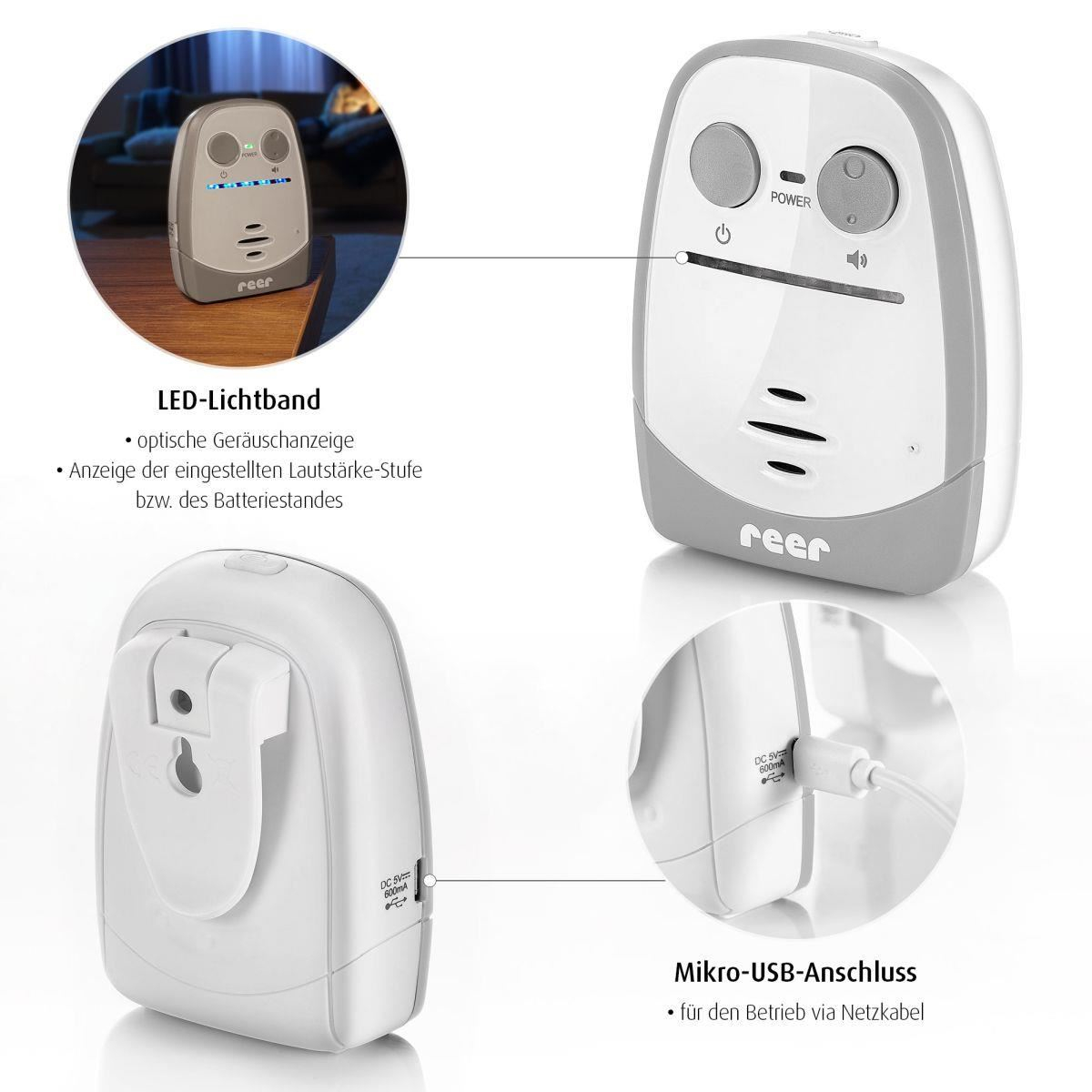 Unitatea pentru parinte poate fi folosita atat prin intermediul unui adaptor USB, cat si cu baterii. Datorita cablului USB separat, unitatea pentru bebelus poate fi de asemenea operata flexibil prin cablul conectat la orice sursa USB standard. Optiunea de a folosi unitatea pentru bebelusi legata la sursa de electricitate elimina eventualitatea opririi neobservate a dispozitivului, de exemplu din cauza bateriilor slabe.