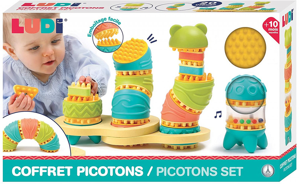 Conceput pentru a dezvolta dexteritatea si abilitatile motorii fine, picotonii sunt usor de inteles. Textura lor moale, culorile stralucitoare si formele geometrice stimuleaza interesul copiilor.
