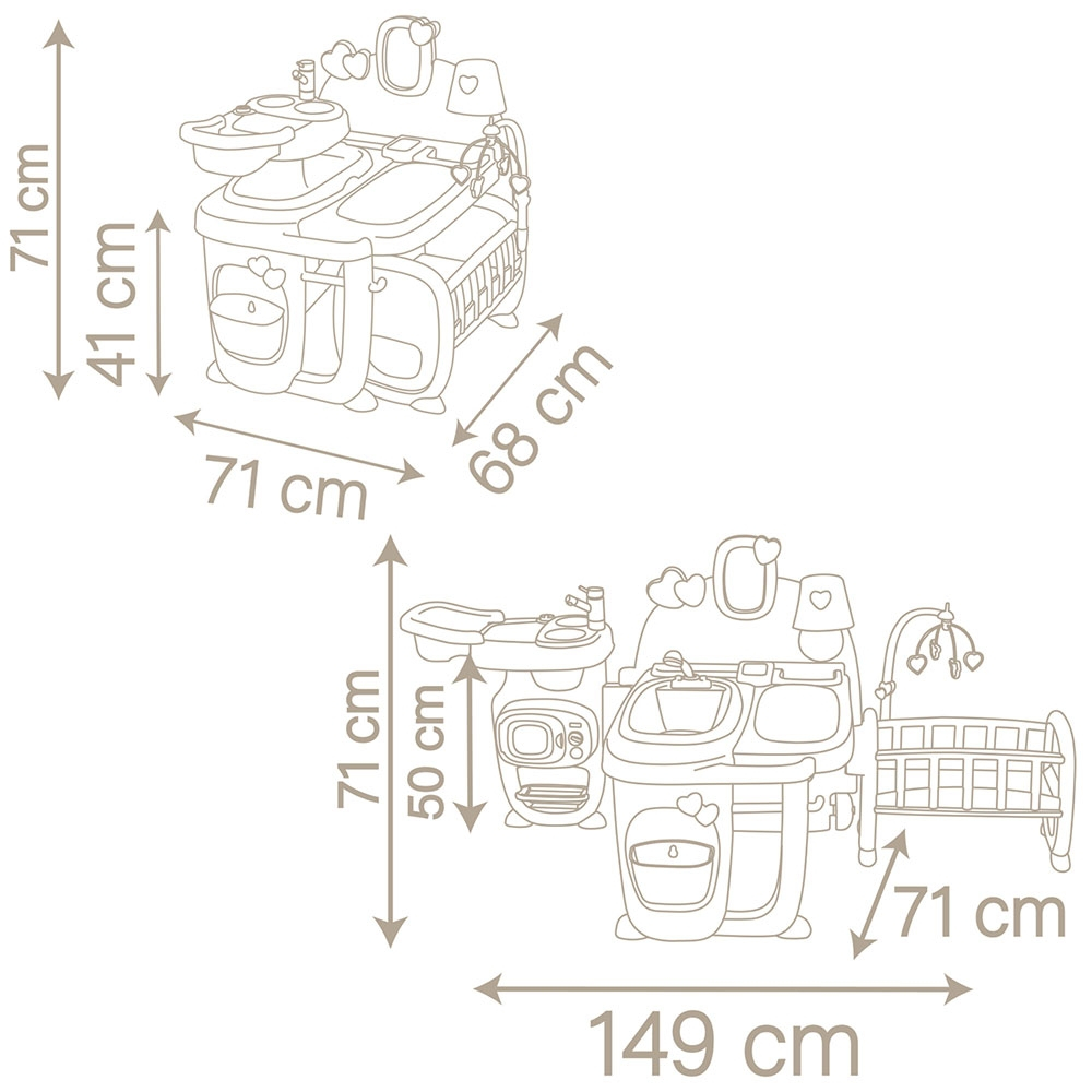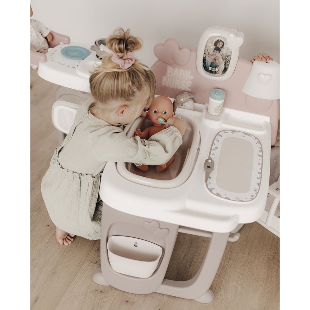 Centrul pentru papusa Smoby Baby Nurse Doll's Play Center este o jucarie rezistenta multifunctionala care le ofera micilor bone diferite posibilitati de joaca