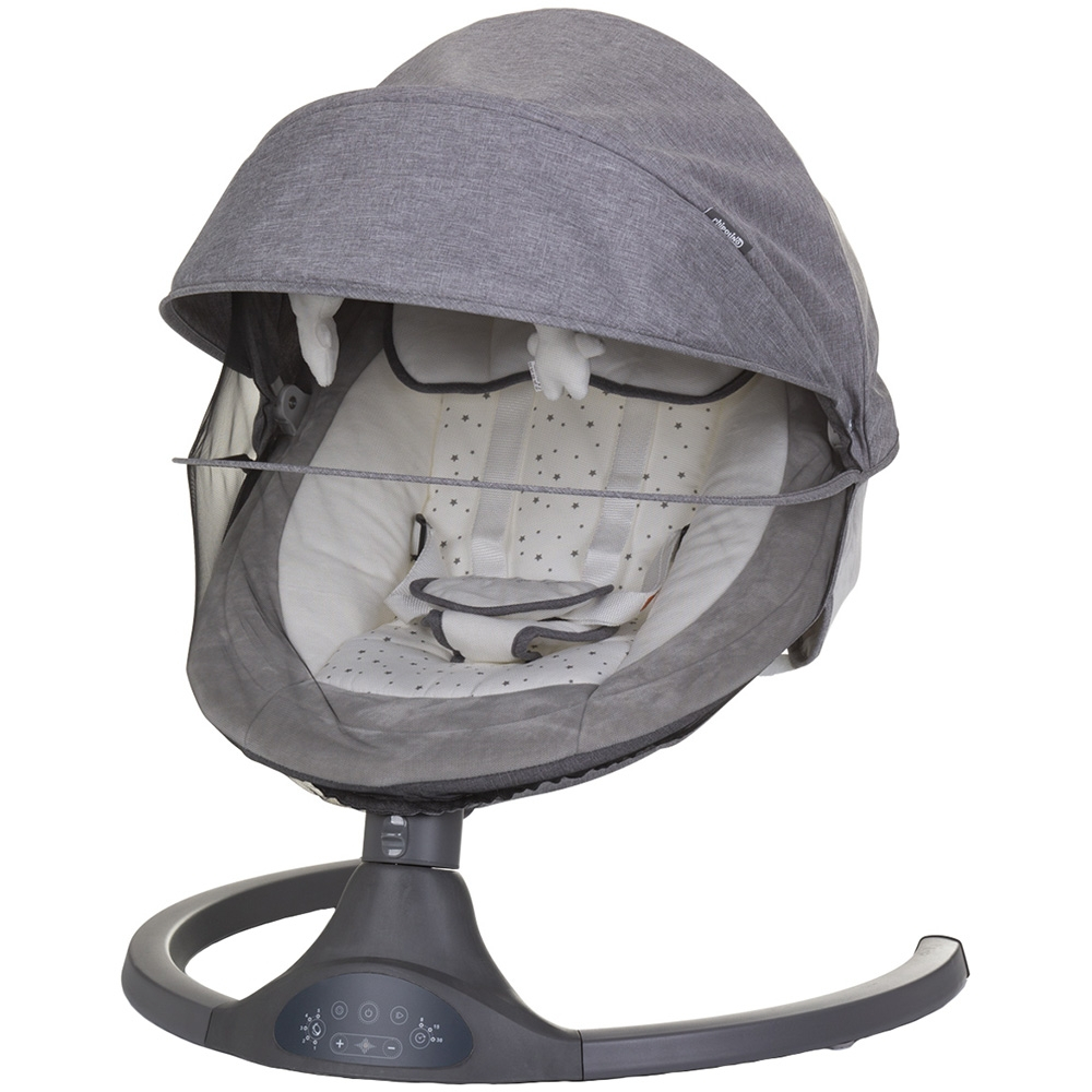Leagan electric Chipolino Brida granite pentru nou-nascuti si copii pana la 6 luni, cu greutatea de pana la 9 kg. Sezut reglabil in 2 pozitii. Copertina cu jucarii de plus va capta atentia copilului. Plasa anti-insecte.