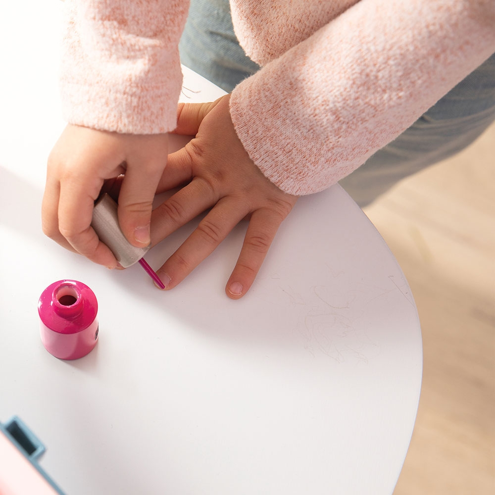 Gentuta cosmetica My Beauty Vanity combina 3 lumi: coafura, manichiura si machiajul. In set veti gasi tot ce aveti nevoie pentru a crea un salon de infrumusetare mobil. Dupa deschidere, veti vedea o oglinda, rafturi, compartimente.
