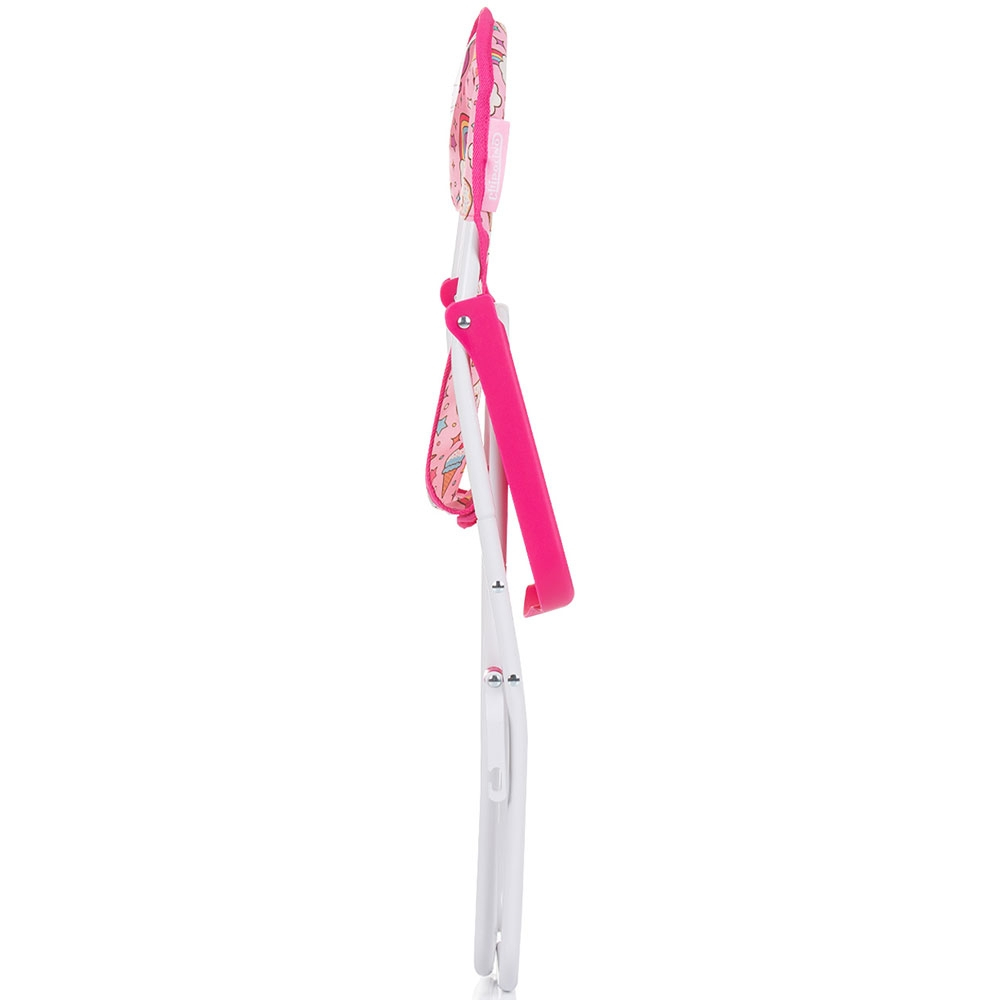 Set jucarii pentru papusi Chipolino Trixy 3 in 1 unicorn pentru copii cu varsta mai mare de 3 ani. Setul contine un carucior cu o gentuta de infasat, un scaun de masa, si un patut cu o geanta pentru transport