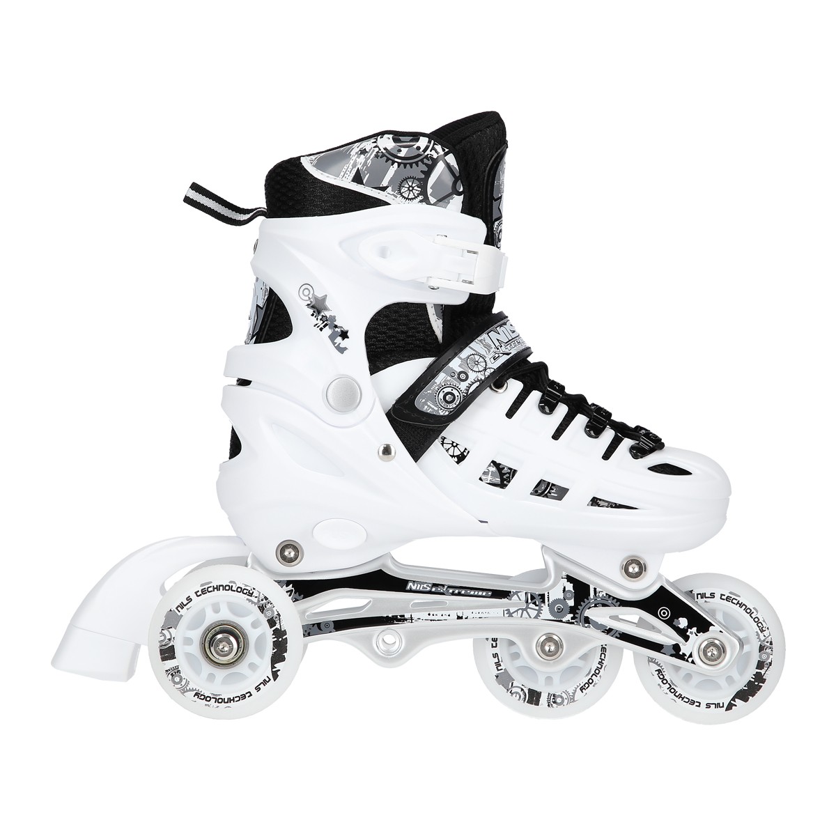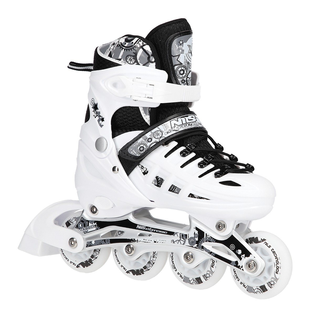 Role Reglabile 4in1 Nils Extreme NH10905-Alb au, de asemenea, optiunea de ajustare a marimii pantofilor in 4 trepte, ceea ce permite adaptarea la nevoile utilizatorului. Este o modalitate de a economisi timp si bani. Aceasta solutie le permite sa isi prelungeasca durata de viata si ofera, de asemenea, posibilitatea de a le utiliza pentru mai multe persoane.
